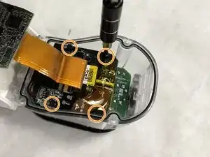 Удалите 4 маленьких чёрных винта (3,5 мм) с платы камеры.