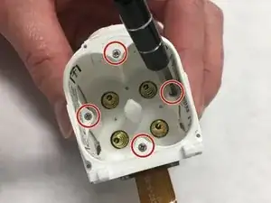 Удалите 2 винта (0,135"), удерживающие разъём зарядки, с помощью отвертки JIS 00.