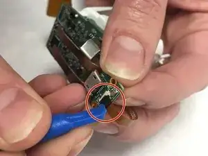 Отожмите держатель чёрного шлейфа с помощью инструмента для вскрытия, чтобы снять шлейф.