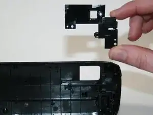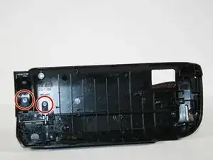 Поднимите маленький язычок, указанный на фото, и отодвиньте его от камеры, чтобы снять кнопку записи.
