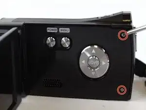 Чтобы получить доступ к зоне под видеокамерой, удалите две детали, закрывающие винты, с помощью пластикового инструмента.