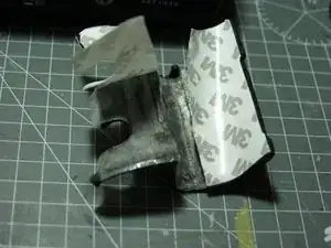 Снимите захват для большого пальца. Обратите внимание, что старый клей расплавился, что потребовало очистки с помощью алкоголя. Новую резину легко заменить.