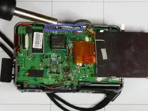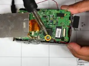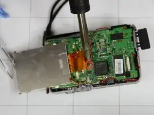 С помощью паяльника расплавьте припой и прогрейте металл, расположенный в верхней части печатной платы, как показано на изображении