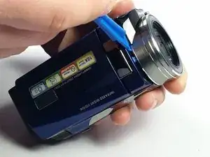 Поднимите сторону с ручкой вверх, чтобы отключить ее от видеокамеры.