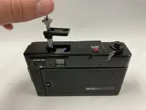 Уберите два винта с помощью отвертки Philips #00 и извлеките ручку пленки из камеры.