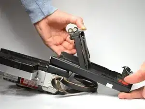 Затем снимите передний рулон, оттолкнув его от себя пластиковым инструментом для открытия.
