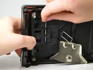 Открутите три винта 2.5 мм (прикрепленные к металлической пластине) с помощью плоской отвертки 3.0. Затем снимите металлическую пластину.