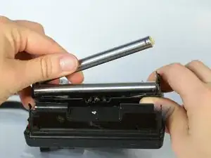 Снимите задний рулон с помощью пластикового инструмента для открытия, отстегнув его от металлической рамы.