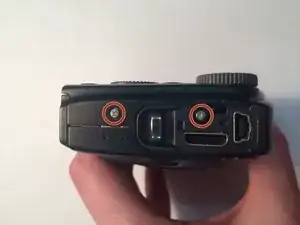 Затем удалите 2 внутренних винта (по 3 мм) с левой стороны камеры.