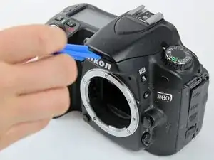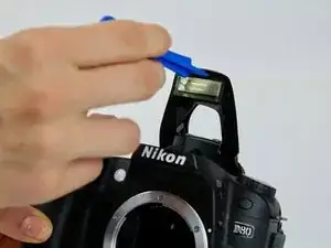 В противном случае используйте пластиковый инструмент для открытия, чтобы осторожно поддеть вспышку, вставив инструмент в щель между вспышкой и камерой.