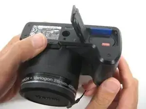 Уберите руку от защелки, и крышка должна открыться. SD-карта находится в верхней части, над аккумулятором. Как показано на последнем изображении этого шага.