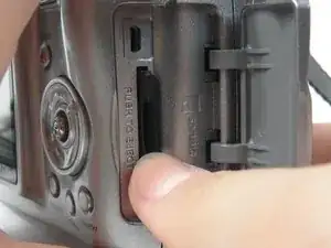 Откройте крышку на правой стороне камеры, если смотреть на ЖК-экран.