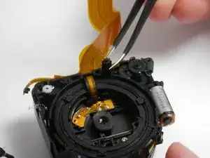 Ранее обнажённые чёрный и красный провода могут мешать извлечению объектива и могут порваться. Если это произойдёт, при сборке потребуется припаяйте эти провода обратно на место.