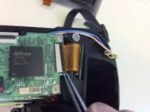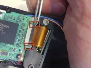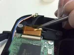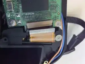 Снимите заднюю крышку с корпуса D70, следя за ленточным кабелем платы ЖК‑экрана, который может зацепиться.