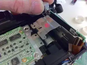 Удалите два крестообразных винта, крепящих держатель слота CF.