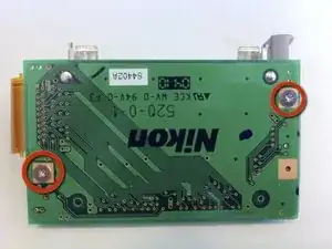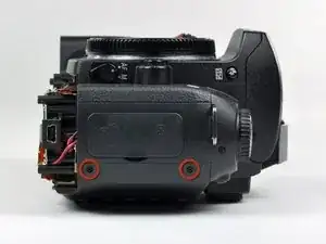 Удалите два крестообразных винта 4,8 мм, крепящих заднюю крышку со стороны разъёмов к корпусу D70.