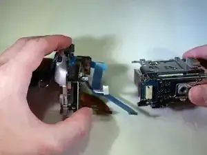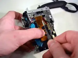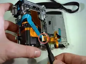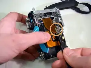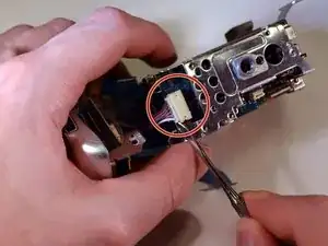 Аккуратно отсоедините маленький лентовый кабель./Сделайте более крупный план этого снимка.