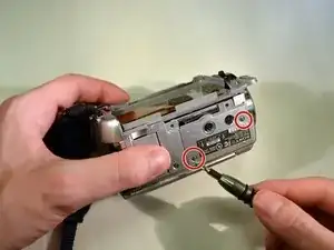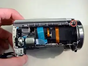 На левой стороне устройства (когда передняя линза направлена влево) отвинтите средний левый 3 мм винт с крестообразной головкой с помощью отвертки.Крупный план винта на фотографии будет лучше.