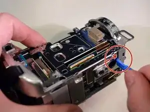 С помощью тупых пинцетов отсоедините синий шлейф./Изменения не требуются.
