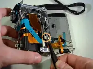 С помощью тупых пинцетов отсоедините маленький оранжевый шлейф.Изменения не требуются.