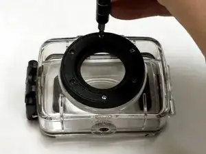 В этом руководстве приведены инструкции по удалению стеклянной крышки объектива на передней стороне водонепроницаемого корпуса видеокамеры. В этом ремонте есть небольшие винты и стеклянная часть, поэтому подготовьте чистое рабочее место и держите корпус на ровной поверхности, чтобы избежать потери винтов или падения стеклянной крышки объектива.