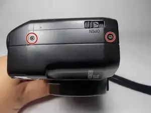 Используя отвертку с головкой Phillips J00, удалите три винта по 5 мм с левой и правой стороны камеры, а также один винт с задней части.