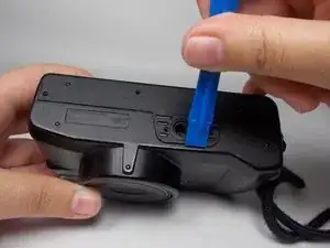 Используя инструмент для открытия, начните с поднятия задней части корпуса в том месте, где расположен разъем для штатива. Поднимайте, пока задняя часть не освободится и не может быть легко снята.