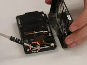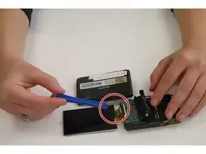 Используйте лопатку, чтобы вынуть шлейф, подключенный к ЖК-экрану.