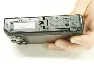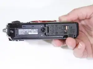 Найдите крышку батареи/карты на дне камеры.