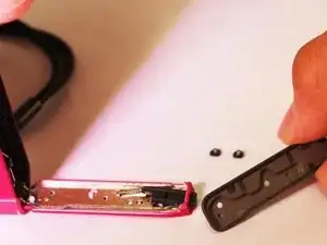 С помощью отвертки Phillips #00 удалите два винта по 2 мм на уплотнителе крышки аккумулятора/карты памяти.