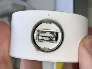Nest Outdoor Camera (не путать с Nest IQ Outdoor Camera) получает питание через длинный USB-кабель, подключаемый к сетевому адаптеру, который подключается в розетку. USB-разъем не такой водонепроницаемый, как заявлено, и этот намок, корродировал, и камера перестала работать.