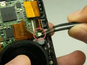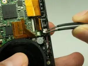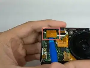 Снимите небольшой чип с передней панели камеры при помощи пинцета.