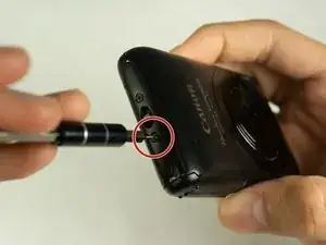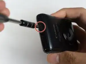 Удалите винт Phillips #000 длиной 3 мм с задней стороны камеры.