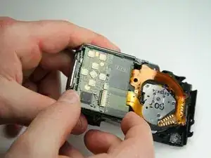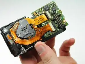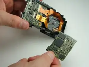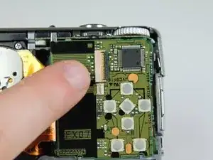 Осторожно поднимите защёлки на ZIF-разъёмах, соединяющих объектив с передней материнской платой.