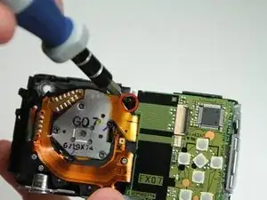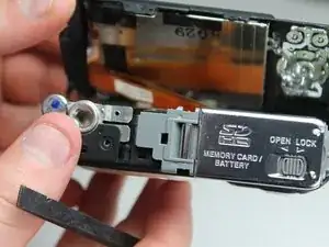Снимите маленький винт в отверстии ближе к верхней части камеры (#00P, 5.4 мм).