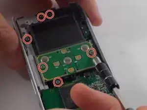 Снимите три винта 1 мм, крепящие USB-разъём и заднюю часть корпуса, крестовой отверткой.