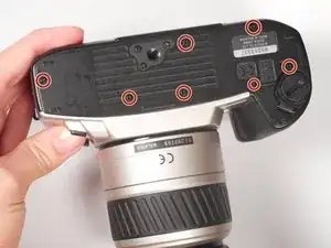 Если смотреть на заднюю часть камеры, по обе стороны видоискателя должен быть по одному винту.