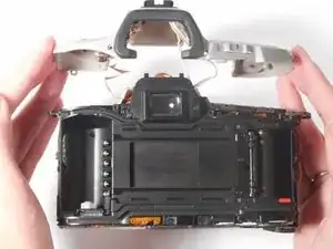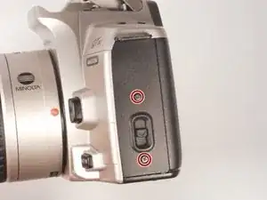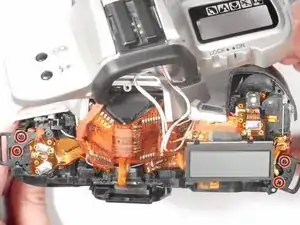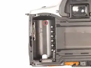 Удалите эти (2) серебристых винта Phillips #00 длиной 5 мм с каждой стороны видоискателя.