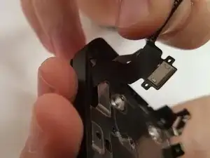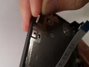 Найдите чёрную шлейфовую ленту в нижнем левом углу внутренней части камеры.