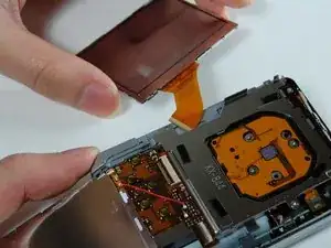 Вытащите ЖК-экран вместе со шлейфом из камеры.