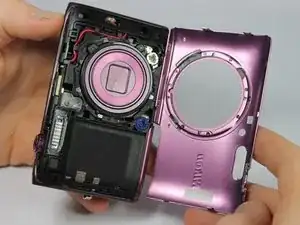 Этот руководств позволит пользователю снять верхний корпус камеры, чтобы получить доступ к внутренним частям Nikon Coolpix S5300.