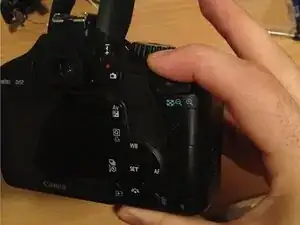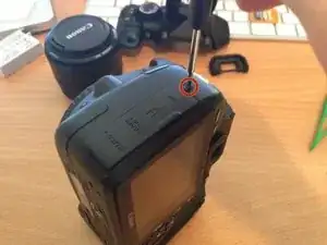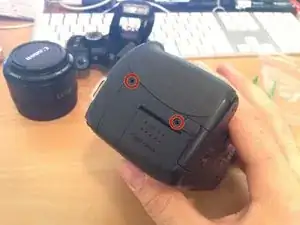 Выкрутите два винта с правой стороны камеры, рядом со слотом для CF-карты.