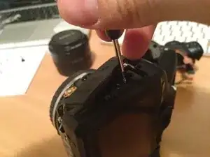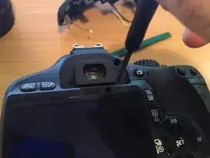 Выкрутите винт по центру регулировочного колеса резкости видоискателя. Он выйдет вместе с колёсиком.