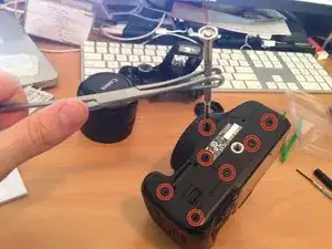 Выкрутите винты с нижней части камеры. Обратите внимание, что они могут быть сильно затянуты. Один конец отвёртки придерживайте рукой, а вторую руку используйте для вращения плоскогубцев или зажима.