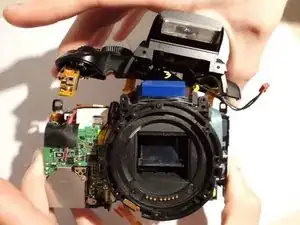 Снятие верхней крышки камеры необходимо для обслуживания или замены компонентов, таких как модуль вспышки или любые кнопки, расположенные на верхней части камеры. Для снятия верхнего корпуса необходимо демонтировать как заднюю, так и переднюю части корпуса.