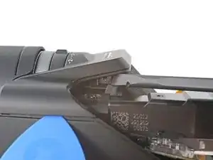 Сдвиньте лезвие в направлении задней части камеры, чтобы освободить защёлки вдоль левого края.