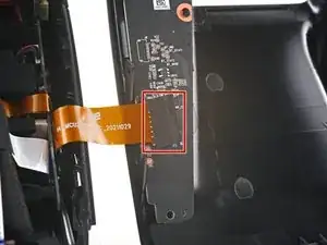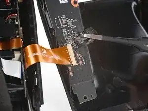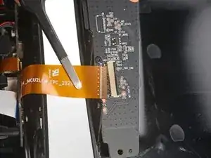 С помощью пинцета снимите ленту, закрывающую ZIF-коннектор межсоединительного кабеля на плате управления.