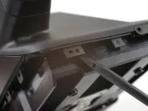 Вставьте кончик лезвия между рамой и внешней правой защёлкой верхней крышки.