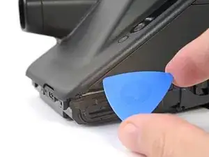 Вставьте плоский конец лопатки между рамой и внешней левой защёлкой верхней крышки, над видоискателем.
