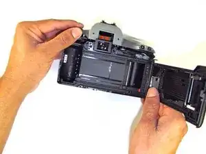 Снятие верхней части камеры обеспечивает доступ для ремонта привода видоискателя и диска управления.